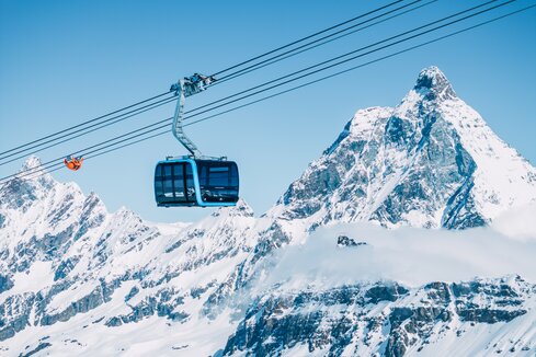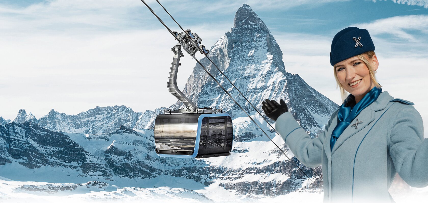 Die Seilbahnreise rund ums Matterhorn bietet einen atemberaubenden Ausblick auf die Zermatter Bergwelt und ermöglicht eine Reise durch die komplette Fauna, Flora und Gletscherlandschaft. Schon beim Boarding beginnt das Abenteuer: modernste Kabinen, höchste Sicherheitsstandards und ein Panorama, dass an einen Fensterplatz in der First Class erinnert.
