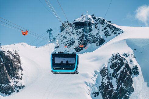 Auf knapp 3'500 Metern über Meer verläuft die komfortable Überquerung der Landesgrenze zwischen der Schweiz und Italien. Während dieser einmaligen Reise warten zahlreiche weitere Highlights entlang der Route. Auf 3'883 m.ü.M thront der höchste Gletscherpalast der Welt oder die Aussichtsplattform mit Sicht auf 38 Viertausender und 14 Gletscher in 3 verschiedenen Ländern.