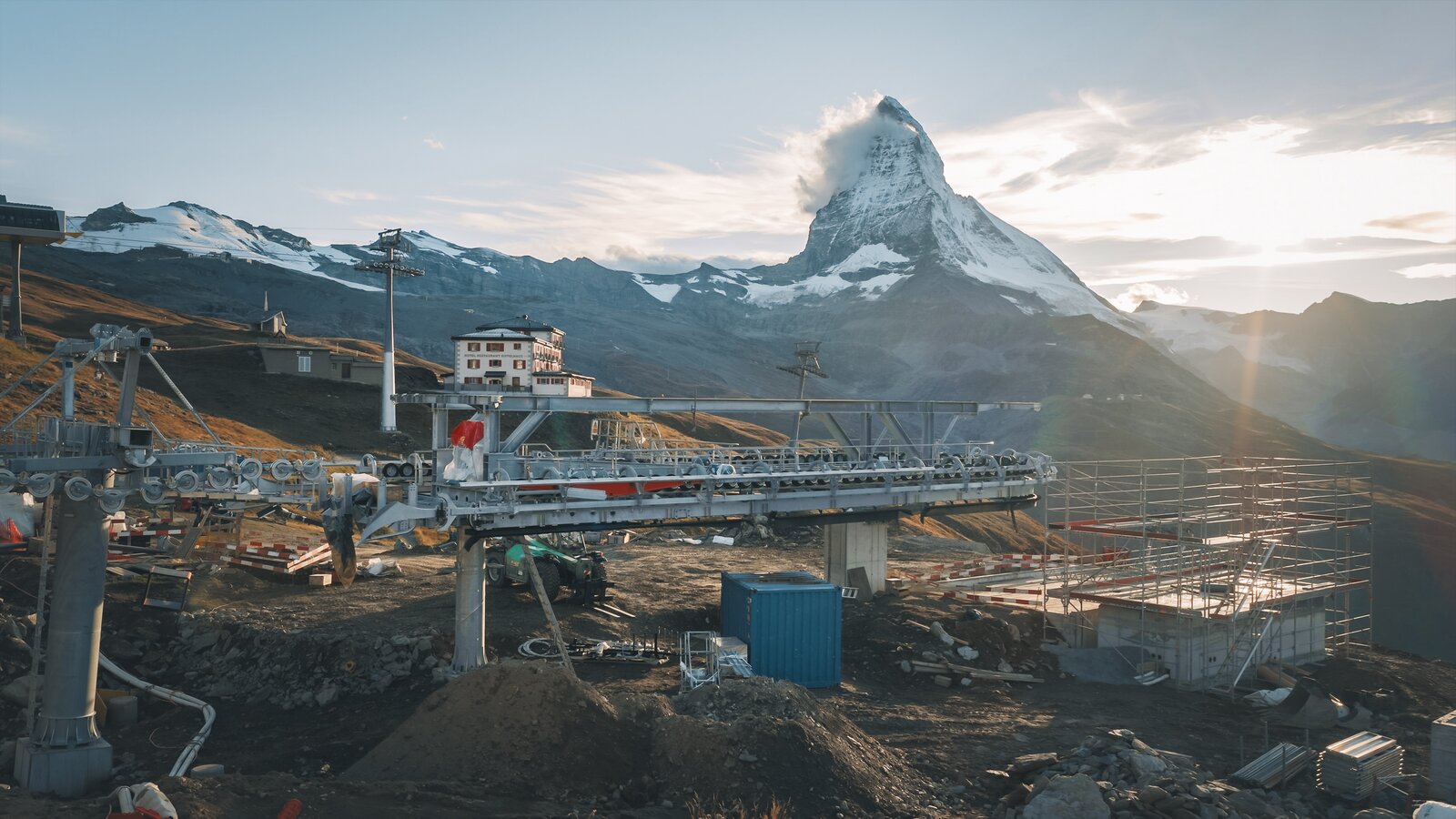 In termini di sostenibilità, il nuovo impianto è un altro fiore all'occhiello della Zermatt Bergbahnen. Particolare attenzione è stata dedicata alla progettazione dell'infrastruttura per il personale, tenendo conto della sostenibilità sociale. Sopra il garage sorgerà una struttura aggiuntiva con uffici, una cucina con sala da pranzo, un locale di soccorso e servizi igienici. Inoltre, il garage offre spazio sufficiente per riporre il materiale da pista. Ai fini della sostenibilità ecologica, sono stati installati pannelli solari per la produzione sostenibile di energia nelle stazioni e l'impatto sulla natura è stato ridotto al minimo. In termini di sostenibilità economica, si ottiene anche un notevole risparmio nel consumo di materiali e risorse. Ad esempio, è stato possibile riutilizzare parte delle fondamenta dei pilastri esistenti per i nuovi pilastri.