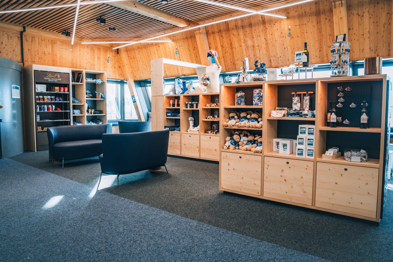 Dopo una breve fase di ristrutturazione, il negozio nel ristorante Matterhorn Glacier Paradise risplende di nuovo splendore. A 3.883 metri sul livello del mare, gli ospiti troveranno un negozio dal design moderno con un percorso ottimizzato per i visitatori e un'esperienza di acquisto notevolmente migliorata.